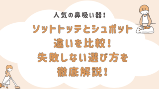 楽天ランキングにも入っている人気の鼻吸い器「ソットトッテ」と「シュポット」!悩むママどっちも気になるけど使いやすいのはどっちなんだろう?しっかりと比較してから自分に合うものを選びたい!というママも多いですよね。この記事では、「ソットトッテ」...