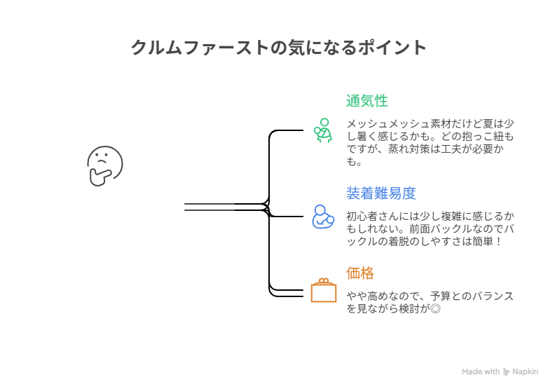特に、初めて抱っこ紐を使う人にとっては「最初の装着でちょっと戸惑った」という声が多めですね。