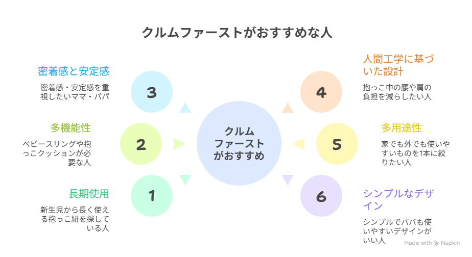 クルムファーストの特徴と他の抱っこ紐との違い