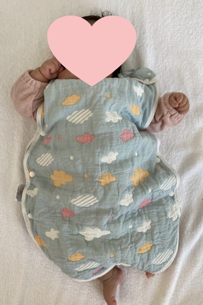 生まれたばかりだと布団が顔にかぶってしまうのも怖いから、スリーパーだとその点も安心だなと思いました!